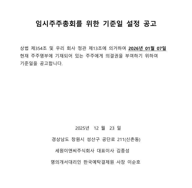 임시주주총회 개최를 위한 기준일 설정공고